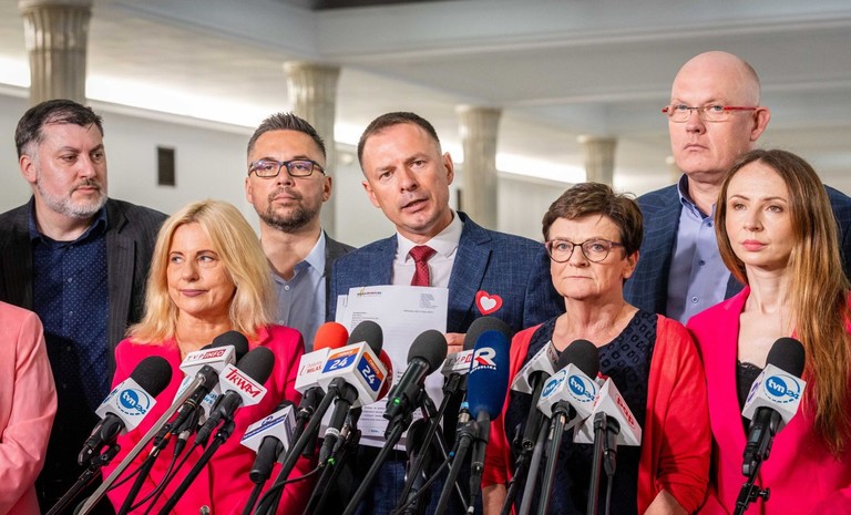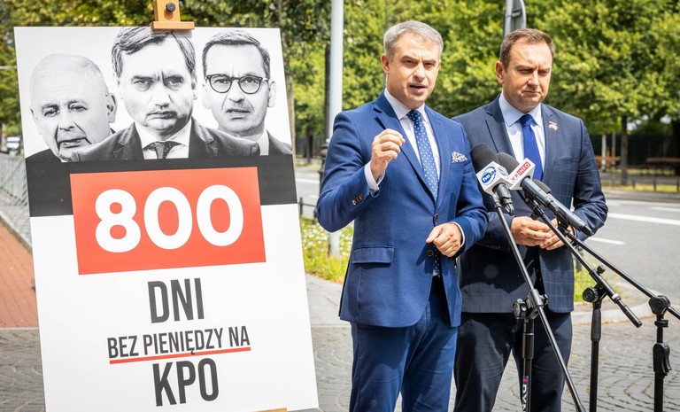 - Żądamy od premiera, aby wreszcie złożył wniosek o wypłatę środków z KPO – oświadczyli posłowie Lewicy podczas konferencji prasowej przed budynkiem KPRM. Dziś mija 800 bez ś...